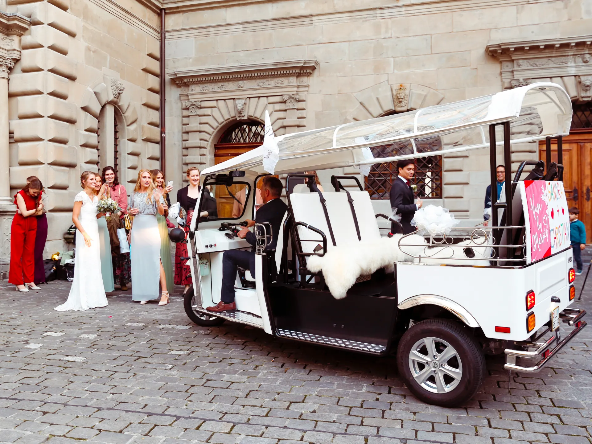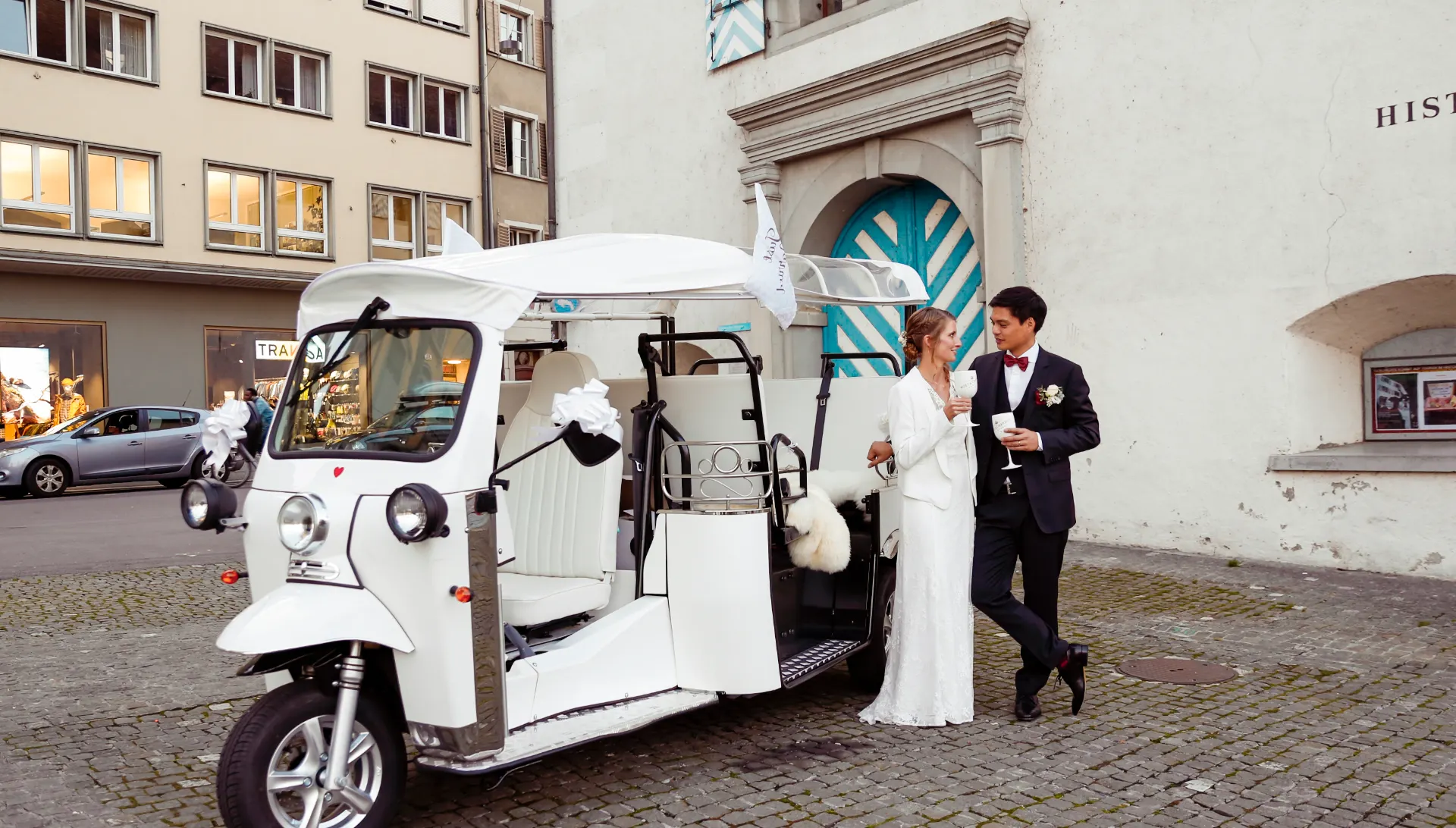 Das Tuk-Tuk ist ein einzigartiger Aufmerksamkeitsmagnet für den Transport von Gästen in der Stadt oder an Ihrem Veranstaltungsort, in Luzern und der ganzen Schweiz. Unsere Dreiräder sind emissionsfrei, leise und können selbst in geschlossenen Räumen gefahren werden. Buchen Sie unser Gefährt als Shuttle, für die Hochzeitfahrt Ihrer Liebsten oder für einen ausgefallenen Polteranlass mit euren Mädels und Jungs.