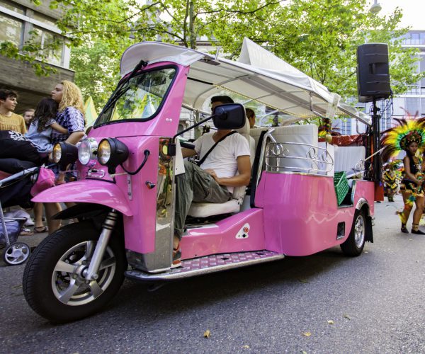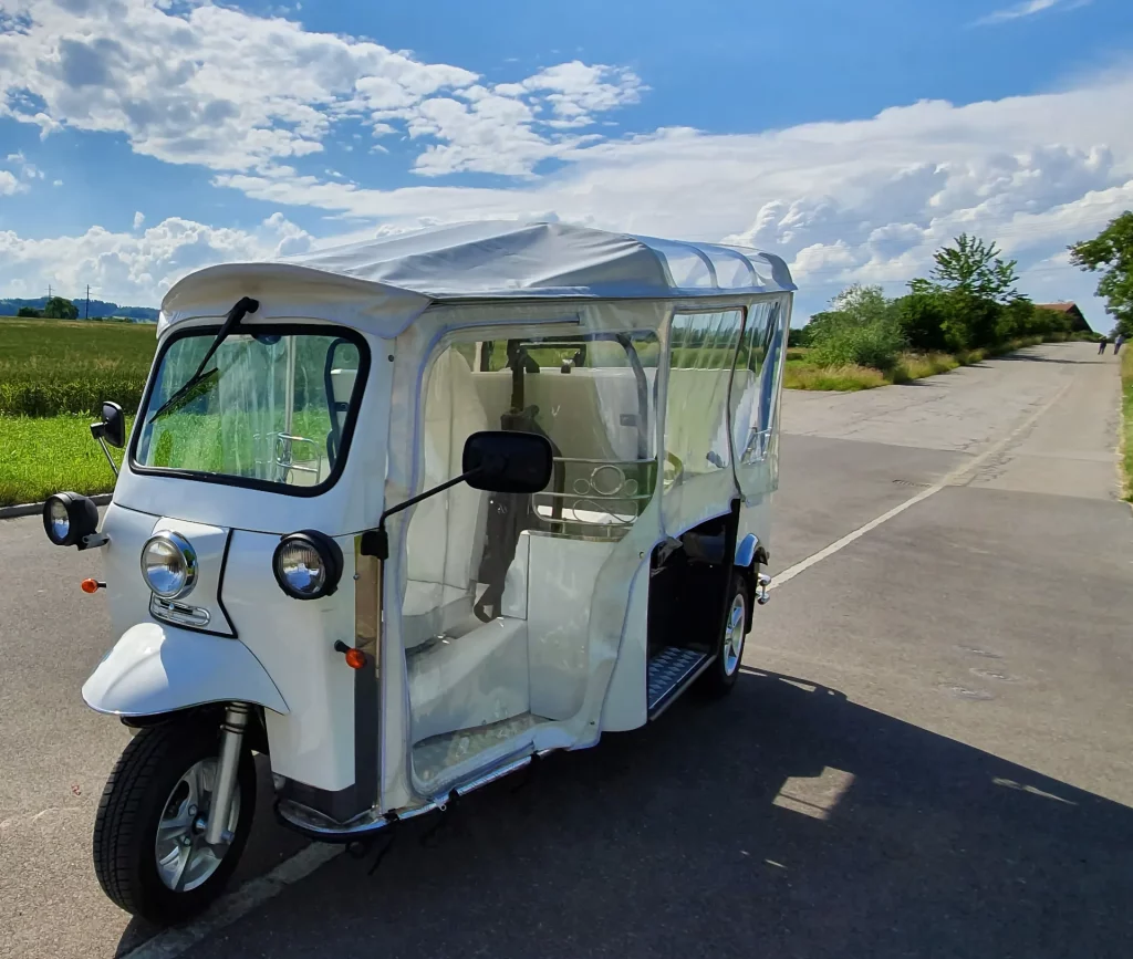 Our 3-wheelers are emission-free, very quiet, and can even be driven around in halls and enclosed spaces. Book with us for your next shuttle ride with your clients, for a wedding ride with your loved ones, or for a wild party with your favorite group of girls and guys.